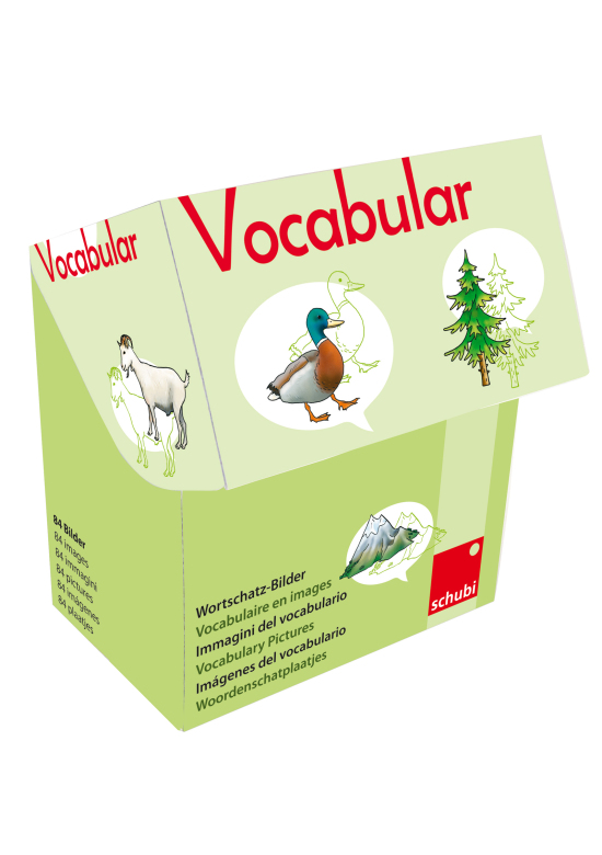 Die farbigen VOCABULAR Wortschatz-Bilder in der Klappbox eignen sich zur Sprachförderung in allen Altersstufen, zur Erarbeitung des Wortschatzes im frühen Fremdsprachenunterricht in der Schule, aber auch für die Sonderpädagogik, die Sprachtherapie und die Arbeit mit Erwachsenen.