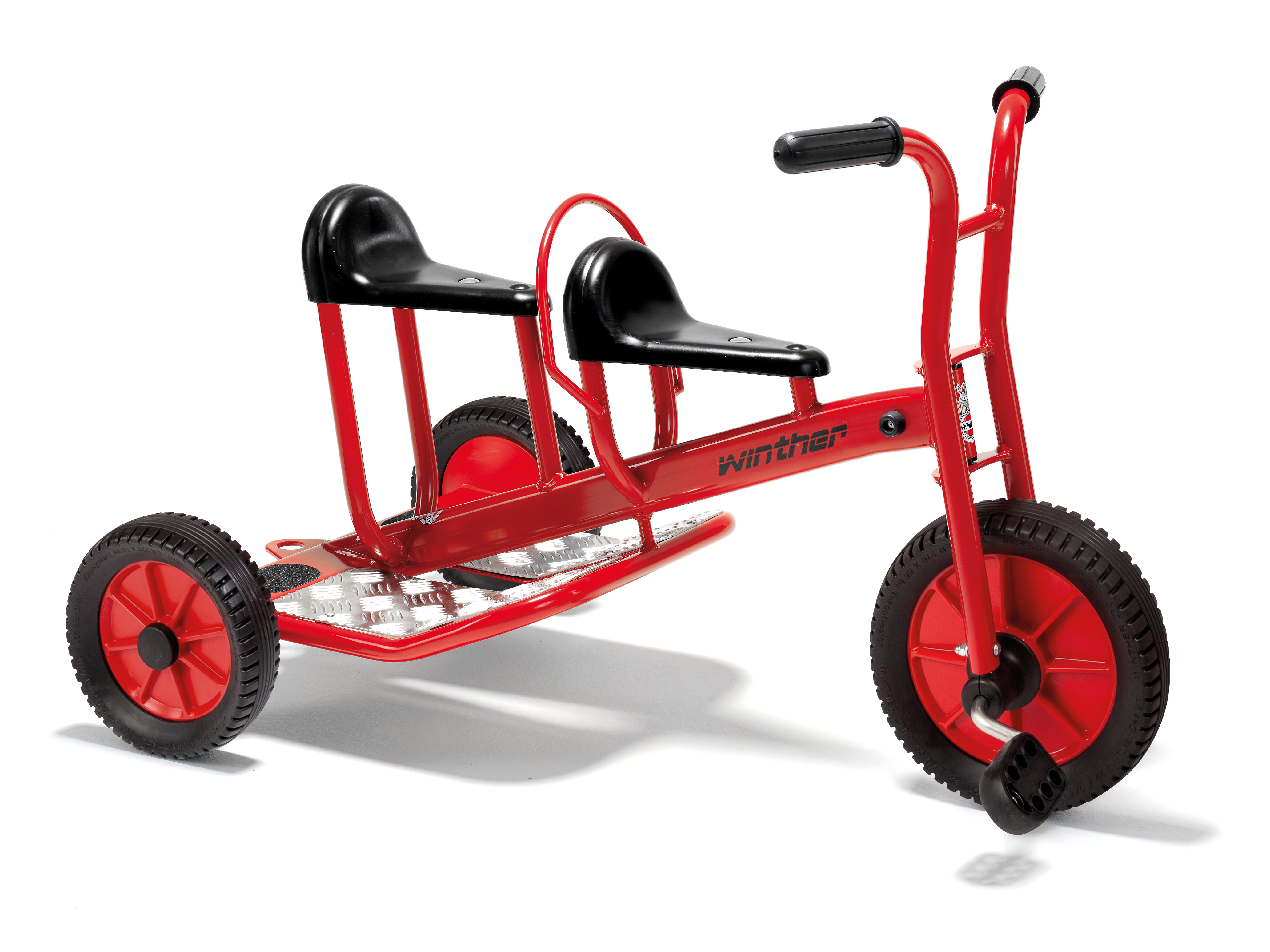 Mit dem Doppeltaxi können mehrere Kinder gleichzeitig zusammen spielen und in phantasievollen Rollenspielen auf Reisen gehen. Mit einem Anhänger wird dieses Fahrzeug noch attraktiver und vielseitiger. Auf der großen, hinteren Sitzbank kann auch ein Erwachsener sitzen und die vorderen Pedale betätigen, deshalb ist das Doppeltaxi sehr gut für den Einsatz im Therapie- oder Rehabereich geeignet.