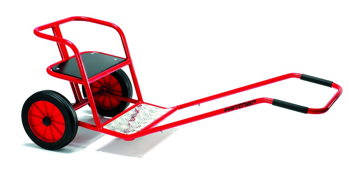Dieser Sulky ermöglicht das Spiel mit Pferd und Wagen. Ein Kind ist Passagier, und ein anderes Kind zieht. Mit Stützrad.