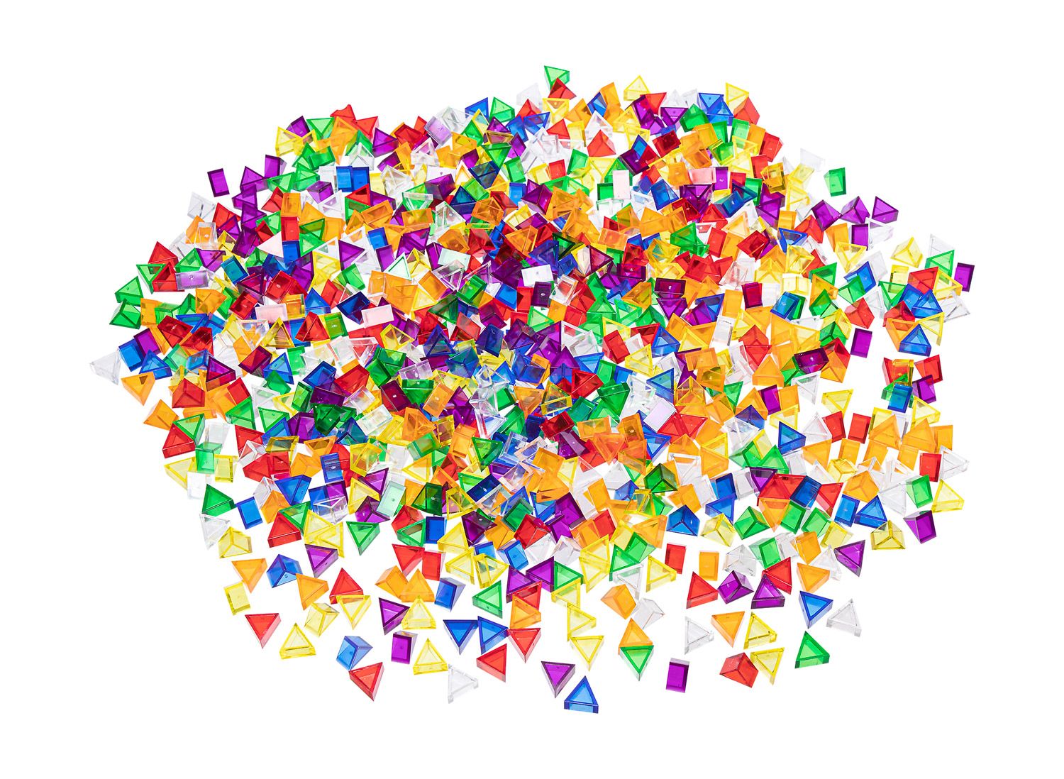 Dreiecke, Trapeze und Rahmen sind beim Legespiel Prismo und beim Trapezlegespiel aus hochwertigem durchgefärbtem Kunststoff.