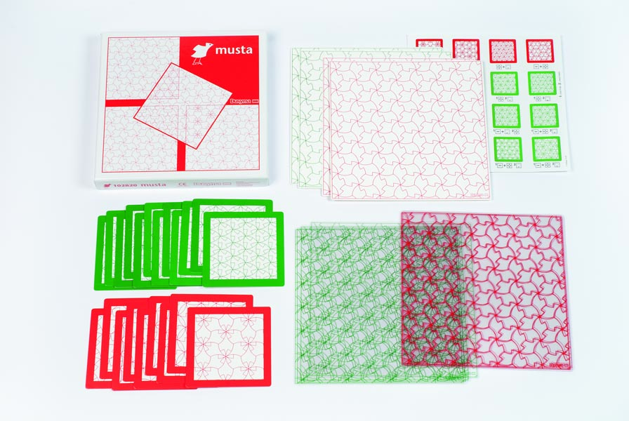 Ein anspruchsvolles Spiel zur Förderung der visuellen Wahrnehmung. Genaue Beobachtung, Konzentration, Feinmotorik und Ausdauer sind gefordert. Grundlage der vielen verschiedenen Muster ist ein einziges grafisches Element! Dieses Element ist auf der Grundplatte und auf den Folien aufgedruckt. Durch Verschieben, Drehen und Spiegeln einer oder zweier Folien auf der Grundplatte entstehen immer wieder neue Muster. Die Kinder sollen zunächst ganz frei ihrer Freude am Experimentieren nachgehen. Das Erfolgserlebnis über die vielen neuen Muster, die sie finden, ist riesengroß und spornt zu immer neuen "Erfindungen" an.