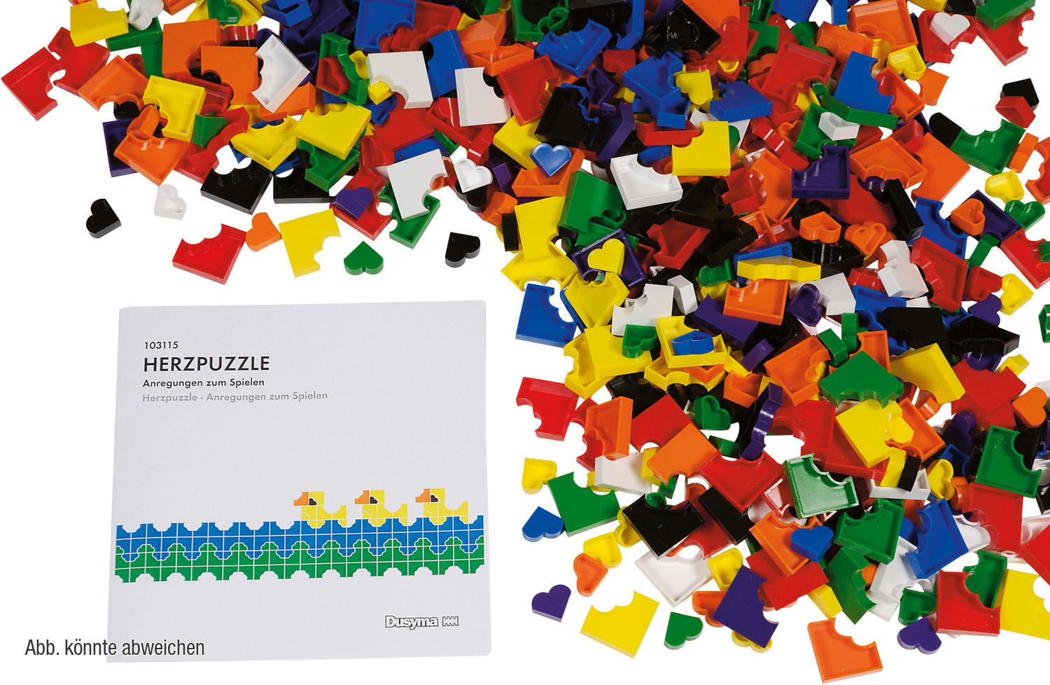 6 Legerahmen weiß (225 111), 1 Herzpuzzle-Legesteine Großpackung (225 110), 1 Herzpuzzle Anleitungsheft (103 115)