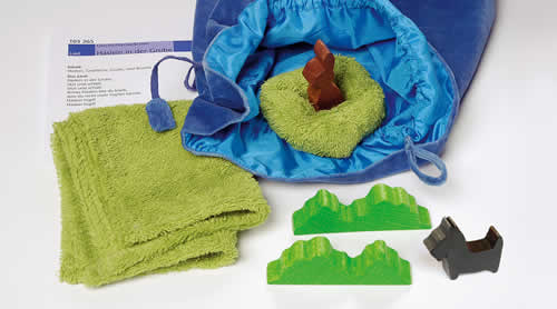 Schon lange kommen die Geschichtensäckchen in der pädagogischen Arbeit in schwedischen Kinderkrippen zum Einsatz und unterstützen den Erwerb wichtiger Basiskompetenzen bei Kindern. Kleine Geschichten werden mit Dingen, die die Kinder aus ihrem Alltag, aus Märchen oder Liedern kennen, nachgespielt. Das stets wiederholbare darstellende Spiel durch die Erzieherin findet in einer vertrauten Atmosphäre statt, gibt den Kindern emotionale Sicherheit und regt sie zum Nachahmen an. In den wunderschön farbigen Samtsäckchen befindet sich jeweils Material zu einem Märchen, einer Alltagssituation oder einem Lied. Kinder können so über ihre Gefühle und Erlebnisse berichten, entwickeln und erweitern ihren Wortschatz. Die Geschichten können auch im Bereich der musikalischen Förderung, zur Entwicklung basaler mathematischer Kompetenzen und im Bereich traditioneller Märchen und Geschichten eingesetzt werden. Wir empfehlen Ihnen das Buch zu den Geschichtensäckchen von Antje Bostelmann (806 ,814). Von 1 - 4 Jahre. Die Säckchen enthalten teilweise verschluckbare Kleinteile, sie werden deshalb hauptsächlich von der betreuenden Person bespielt.