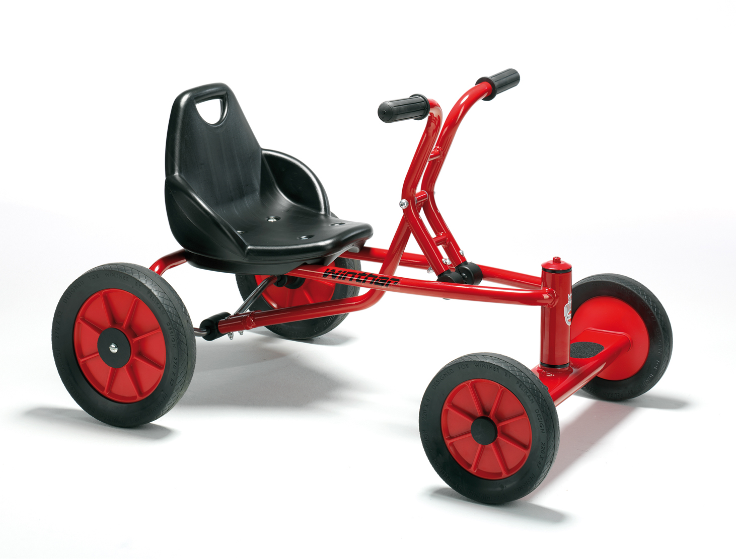 Dank stoßfester Pulverbeschichtung, effektivem Rostschutz und langlebigen Industrie-Kugellagern an Vorder- und Hinterrädern ist der Winther® VIKING Holländer besonders widerstandsfähig und ideal für den Dauereinsatz in Kindergarten, Schule und Freizeit geeignet. Gummipuffer verhindern zudem ein Einklemmen der Finger.