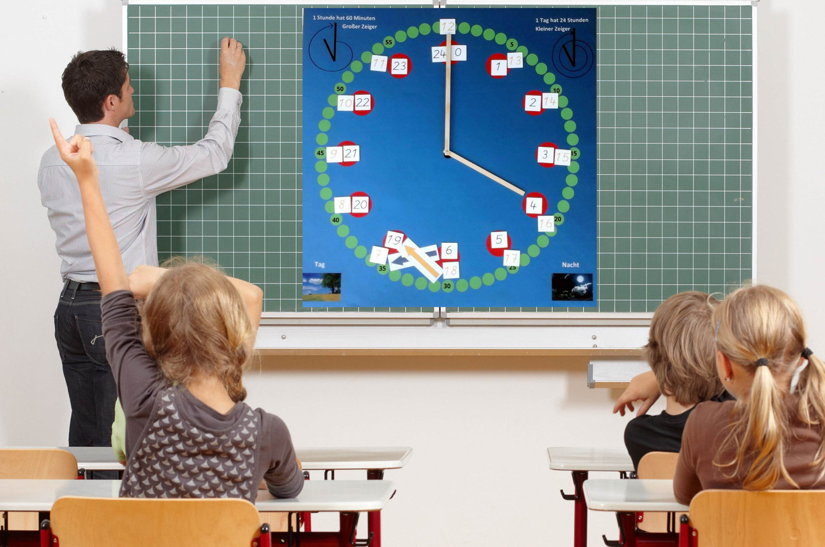 Magnetfole 90x90 cm mit Bild- und Arbeitskarten zum Uhrzeit lernen