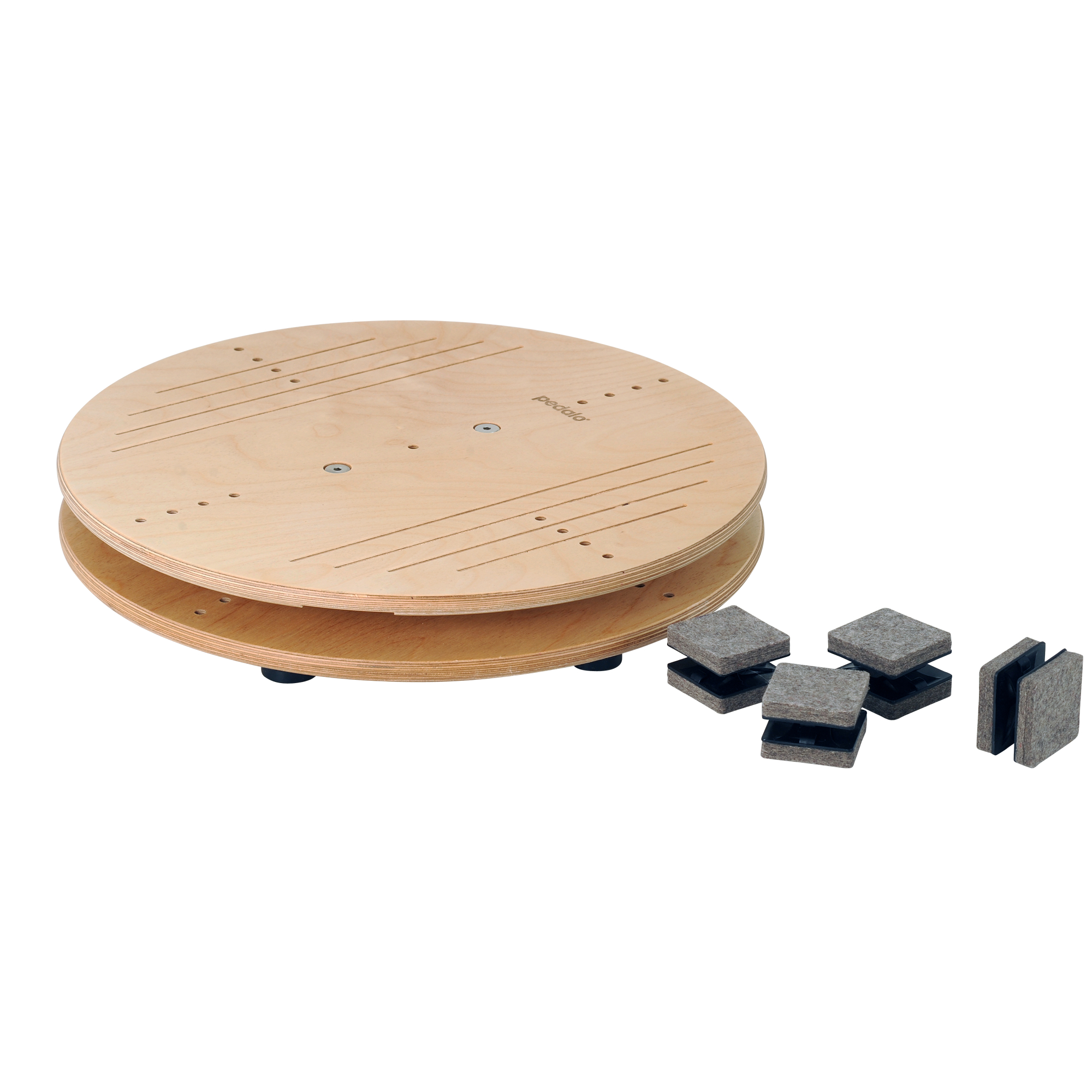 Die Rotationsscheibe aus naturfarbener Birke Multiplex dient der Mobilisierung, Entspannung und Kräftigung der tiefen und der seitlichen Rumpf- und Rückenmuskulatur, sowie der Faszien. Denn gerade die Drehbewegung ist es, die vom Kreuzbein bis hoch zum Hals Wirbelblockaden, Verspannungen und Muskelschmerzen lösen kann. Zusätzlich stimulieren Rotationsübungen um die komplette Körperachse den Gleichgewichtssinn, der für die Körperaufrichtung und die Orientierung der Raum-Lage zuständig ist.