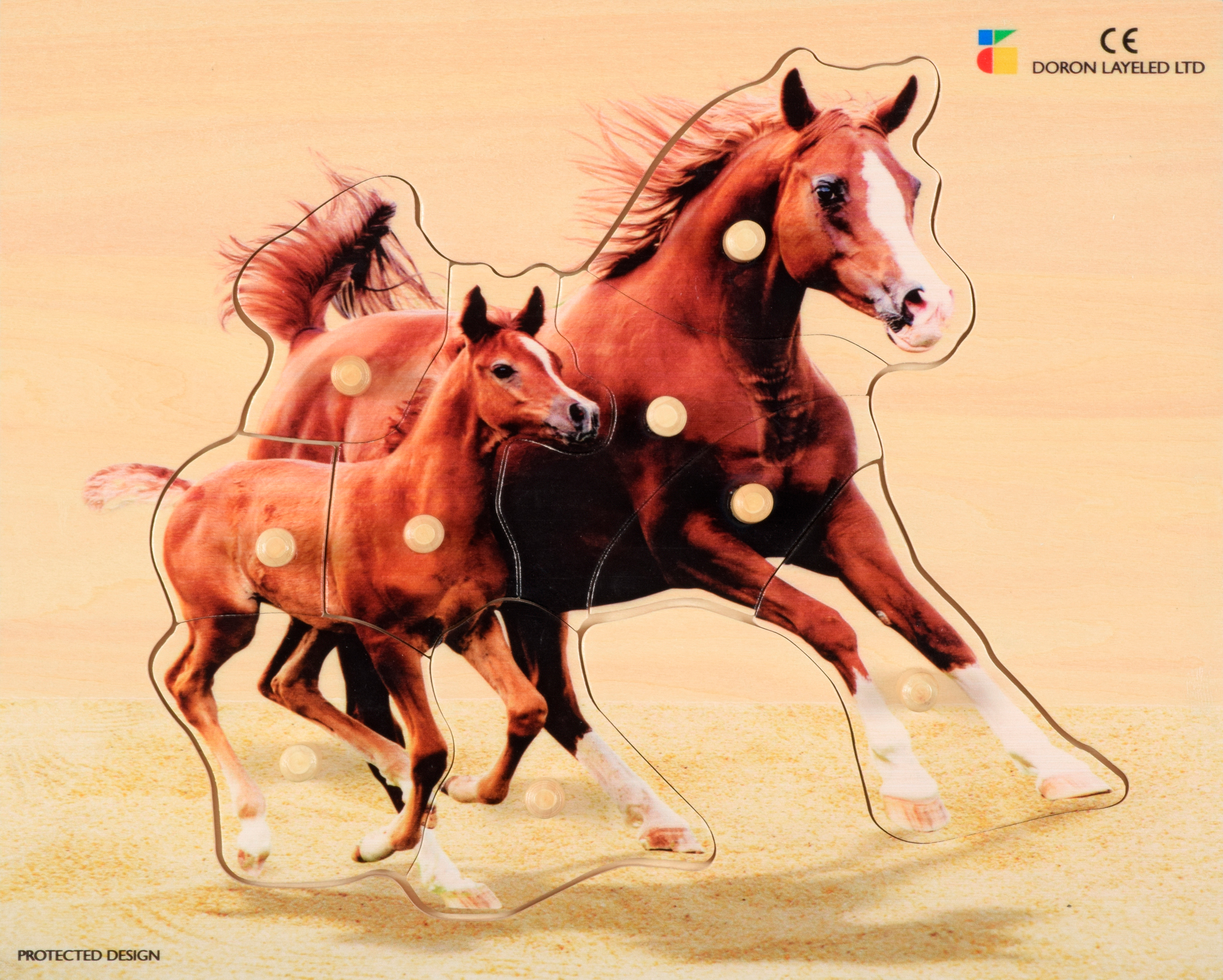 • Holz-Puzzle realistisch Pferd, Mutter mit Fohlen