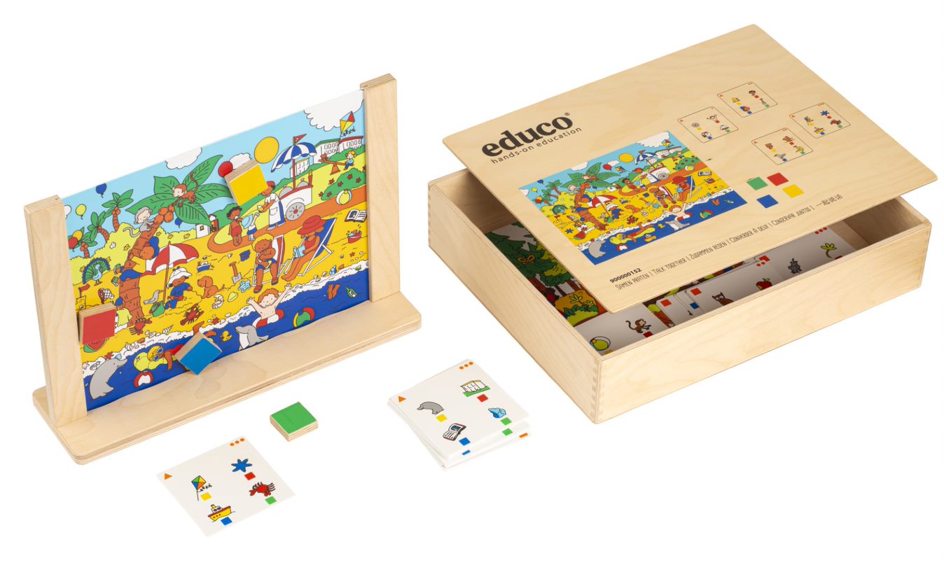 • Beide Spieler nehmen einen Magnetstein mit derselben Farbe und erzählen einander, auf welche Abbildung der Magnetstein gehört.