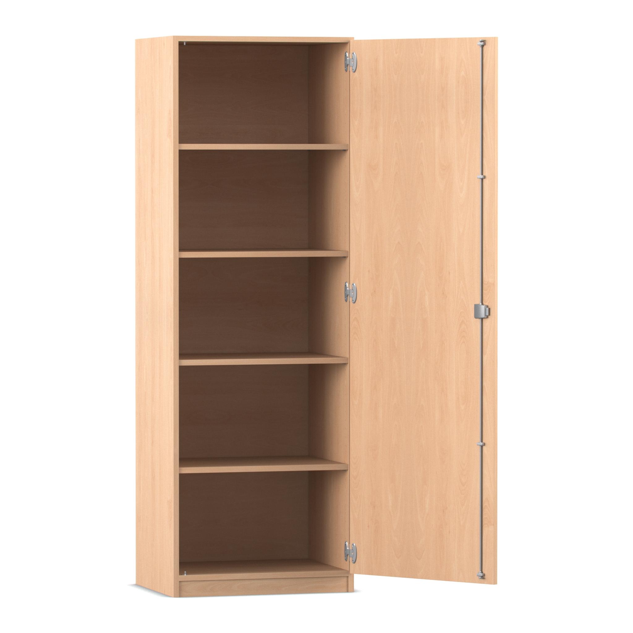 Flexeo Hochschrank Buche hell, 1 Drehtür, 4 Fachböden, 190 x 64,1 cm, Tiefe 50 cm, Schloss