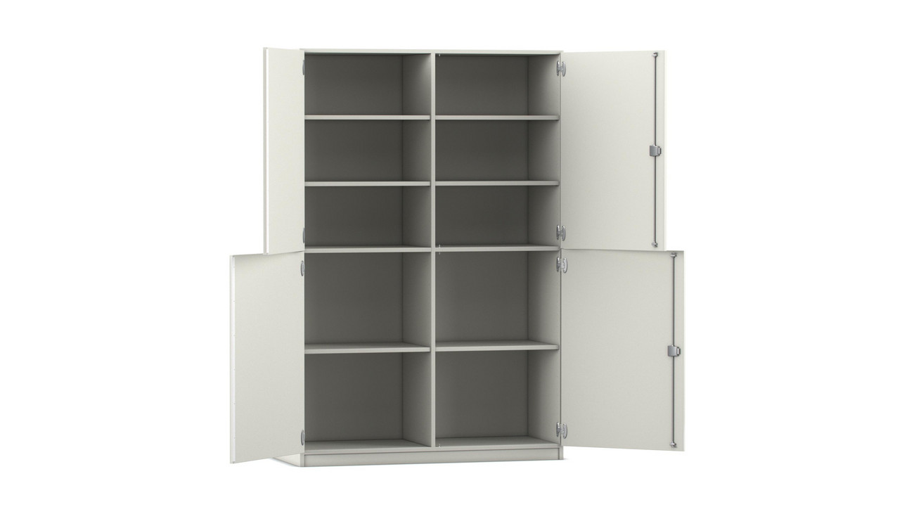 Flexeo Halbtürenschrank weiss, 4 Drehtüren, 8 Fachböden, HxBxT: 190 x 126,4 x 60 cm, Bogengriff mit Schloss