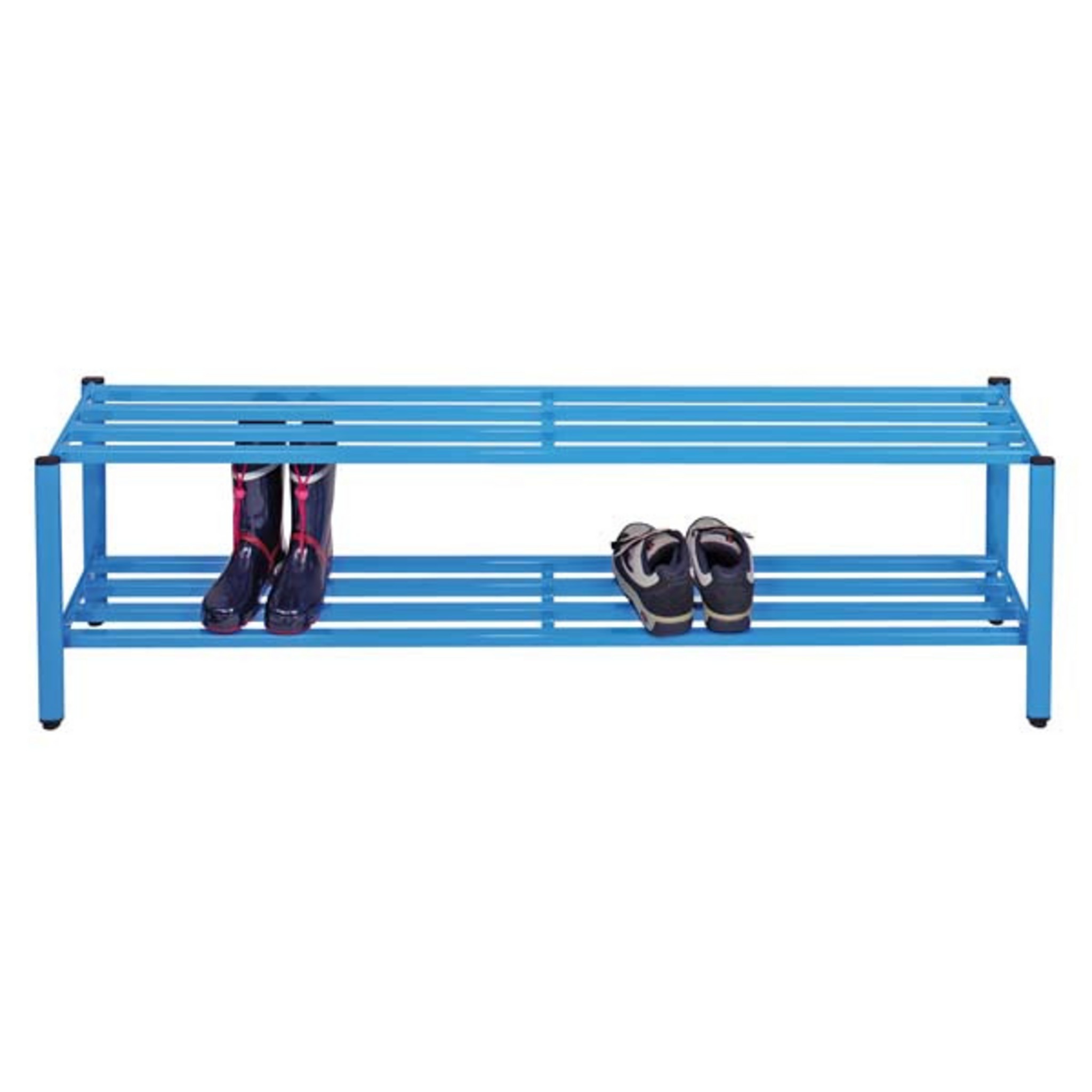 Schluss mit nassen und dreckigen Straßenschuhen im Klassenzimmer oder in der Kindergartengruppe: Das praktische Stiefelregal passt perfekt unter Wand-Garderoben mit Aufhängehaken und erleichtert den Kindern das Ordnung Halten.