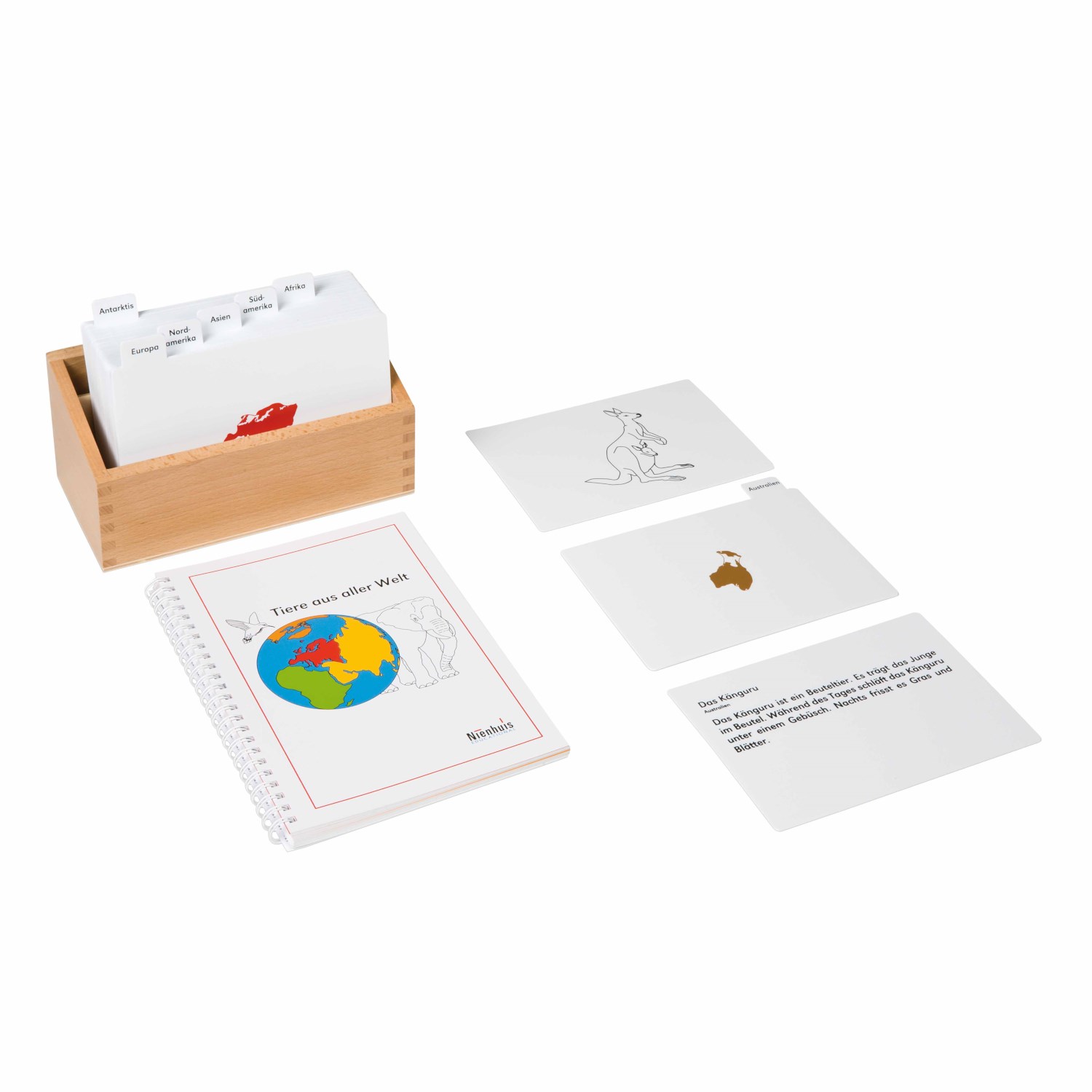 Tiere aus aller Welt, Kartensatz im Holzkasten inkl. Kontrollbuch