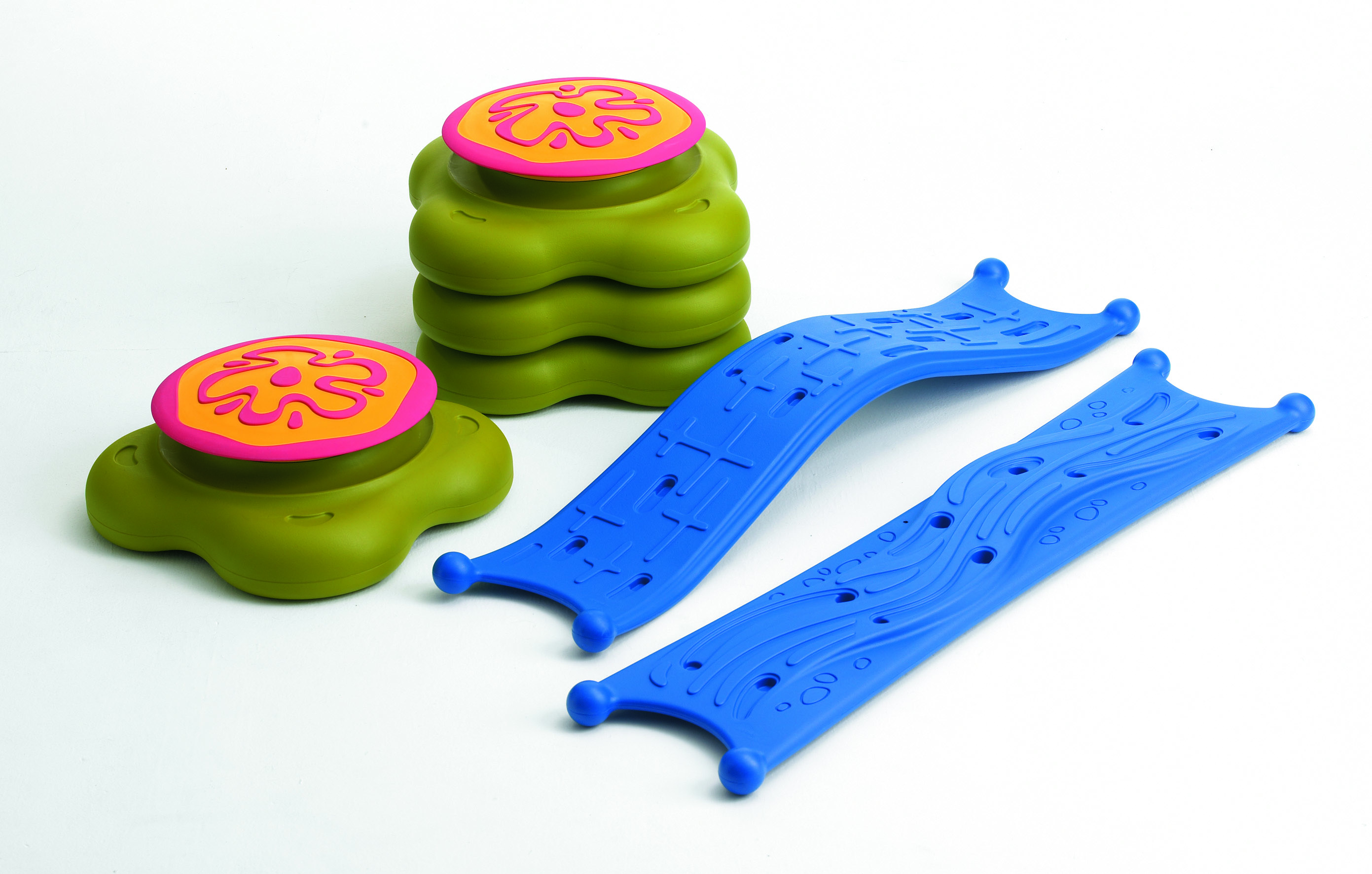 Durch Übereinanderstapeln der grünen Inseln (max. 3 Stück) können Kinder die Höhe selbst bestimmen. Die Balancestege lassen sich leicht und absolut sicher in die Inseln einrasten. Die Oberflächen der Stege sind unterschiedlich für verschiedene Sensorwege, die gebogenen Stege können sowohl als Berg oder Tal eingesetzt werden. Eine Rutschfeste Sensoroberfläche auf den Inseln und Antirutschfüße am Boden erhöhen die Sicherheit. Die Waterlily kann im Innen- und Außenbereich eingesetzt werden (im Außenbereich jedoch nicht als Dauereinrichtung).