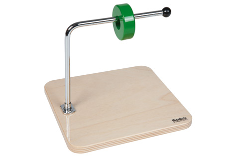 1 Brett mit Scheibe auf horizontal geknicktem Stift 15x15x10 cm.