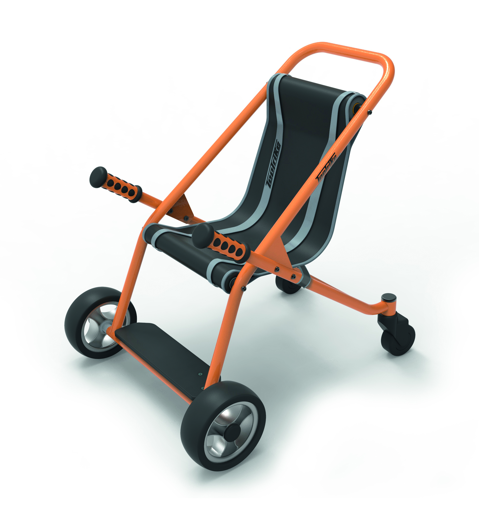 Durch die hinteren mitlenkenden Rollen ist der Buggy unglaublich wendig und meistert auch enge Kurven. Das bringt in der Nutzung Fahrspaß für den Fahrer sowie für den Schiebenden. Bei kleinen, engen Kurven bieten die ausgestellten Griffe Halt und der Geschobene hat den Eindruck, den Buggy selbst zu steuern.