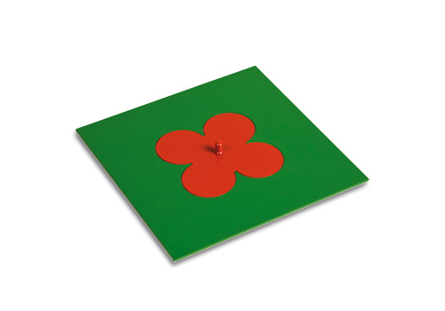 Metallene Einsatzfigur mit Griff und Rahmen in Form einer Blume. Das Anschauungsmaterial zeigt eine Blume und ihre Grundfläche. Dies erleichtert den Kindern den Zugang zur Mathematik. Zudem werden mehrere Sinne der Kinder dabei gefördert.
