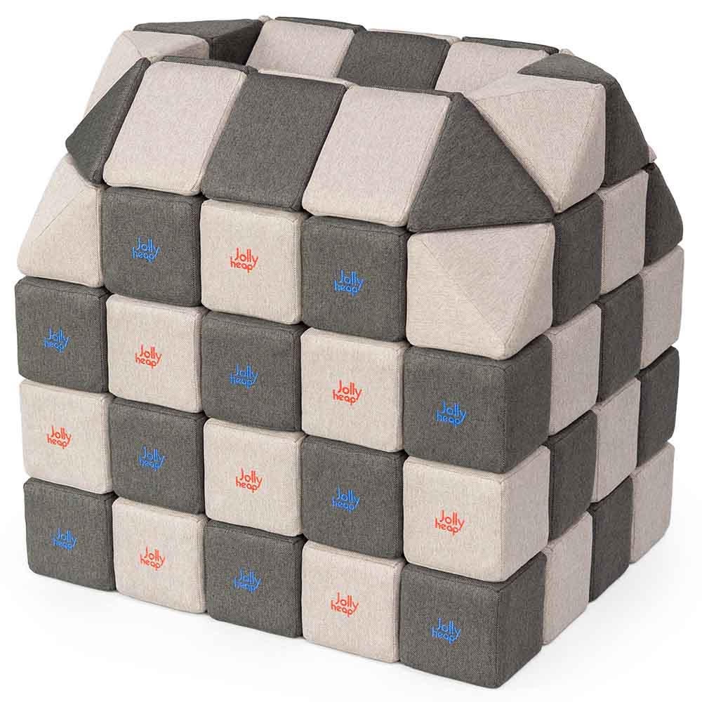 In ihrer Einfachheit eröffnen sie viel Raum für Fantasie und Kreativität. Die Bausteine verlocken zum Ausprobieren, die unter der hochwertigen Textilumspannung versteckten Magnete verwandeln die Softbausteine in spannende Experimentiersets für kleine Hände. Greifen und Kombinieren wird zum kleinen Abenteuer. Aber auch ganz funktionale Ideen lassen sich realisieren: bauen Sie eine Sitzgelegenheit, einen kleinen Treppenparcour oder gar ein Sofa mit den Bausteinen. Vorausgesetzt, Sie haben genügend viele davon!