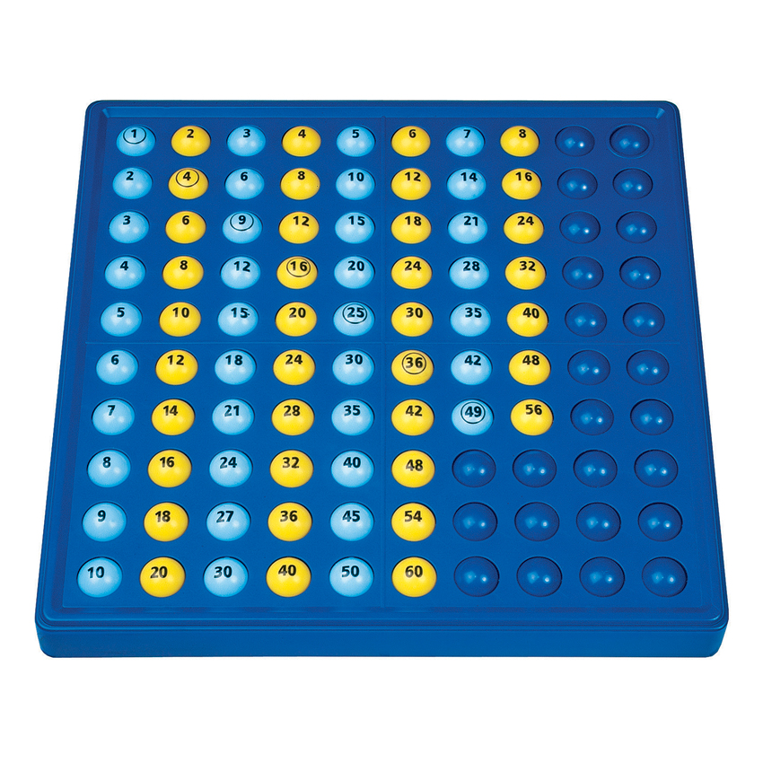 Das schubi abaco 1x1-Gerät gibt es in völlig neuer Farbgebung, die Kugelreihen sind senkrecht angeordnet mit aufgedruckten Zahlen der Einmaleinstafel.