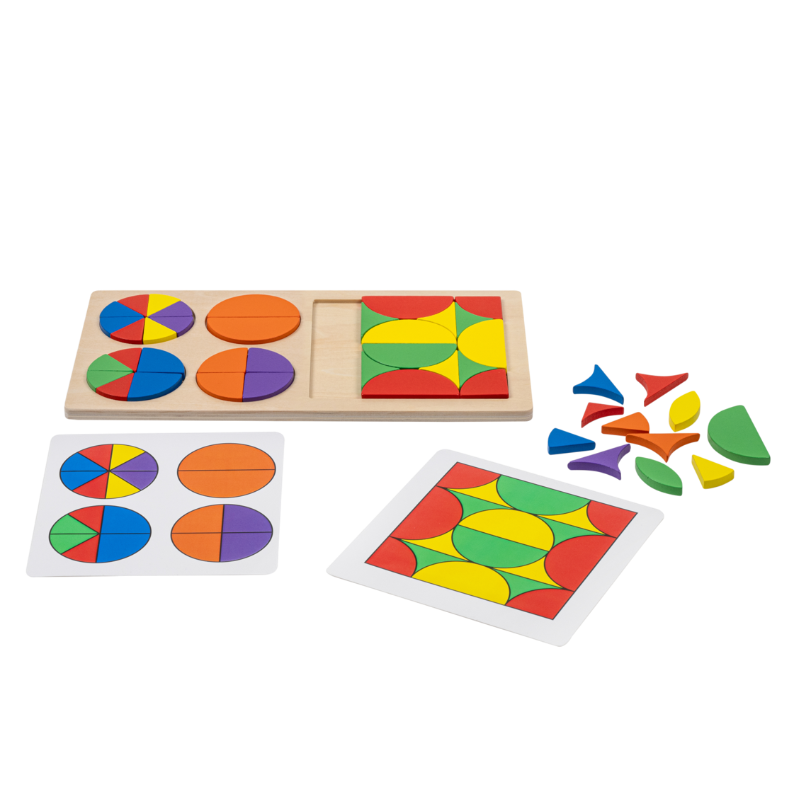Gestalten und komponieren Sie mit Shaper komplizierte Muster. Kinder können Muster aus den beiliegenden Karten nachbilden oder ihre eigenen Muster auf den Shaper-Platten entwerfen. Mit leuchtenden Farben und Mustern vertiefen sie ihr Verständnis für geometrische Komponenten innerhalb eines Ganzen, entwickeln visuell-motorische Fähigkeiten und lernen die Namen von Farben und Formen.