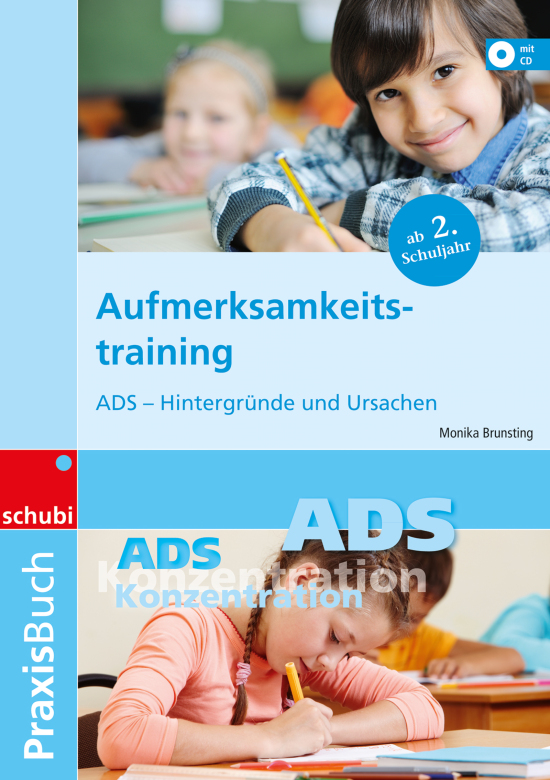 ADS - Hintergründe und Ursachenvom Schul- bis ins Erwachsenenalter – gezielt an der Aufmerksamkeit arbeiten, inklusive CD-ROM mit 120 Arbeitsblättern.