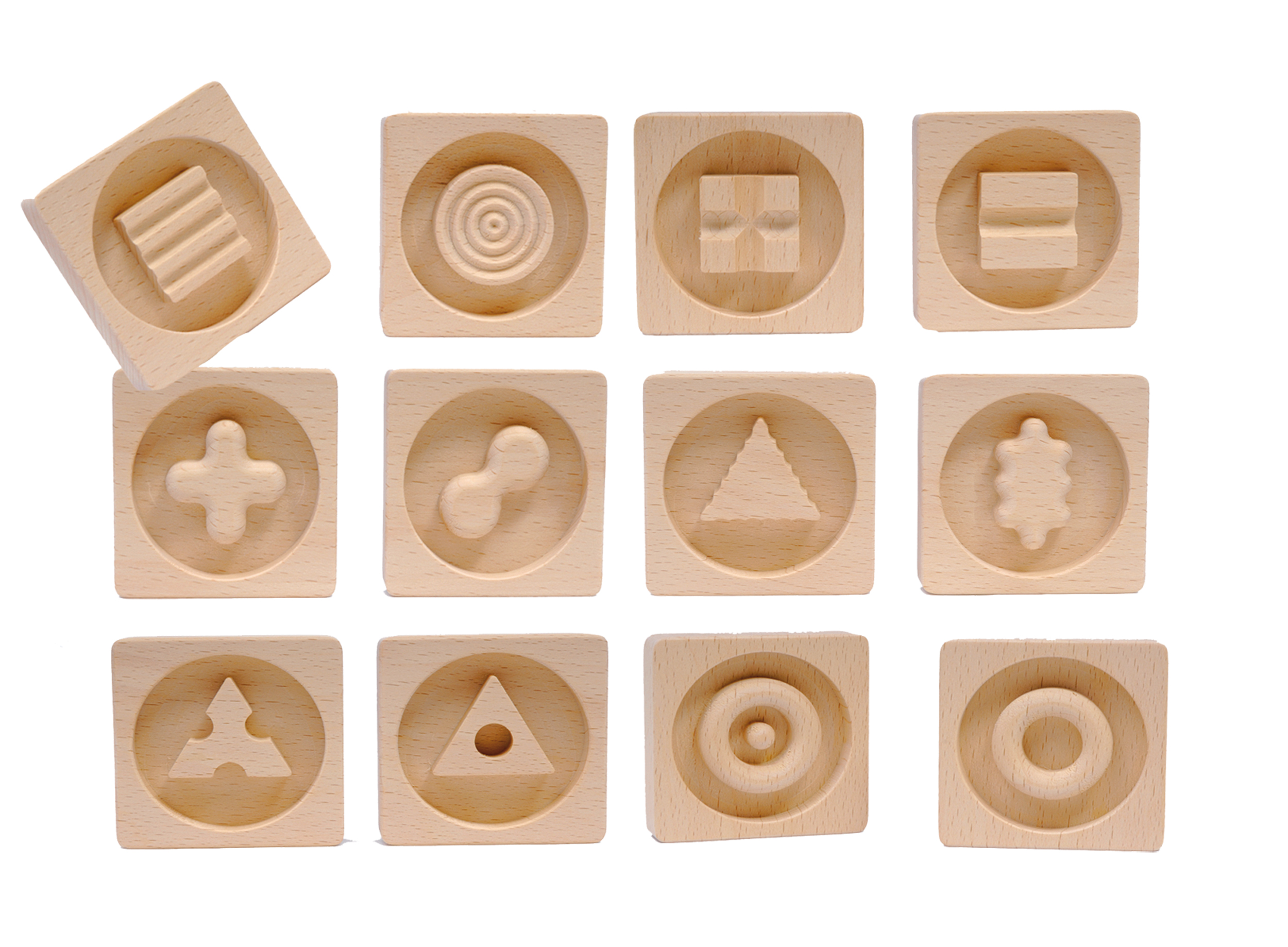 PanTASTINO corpo beinhaltet 12 eckige Buchenholz-Paare mit extra tief gefrästen Motiven.