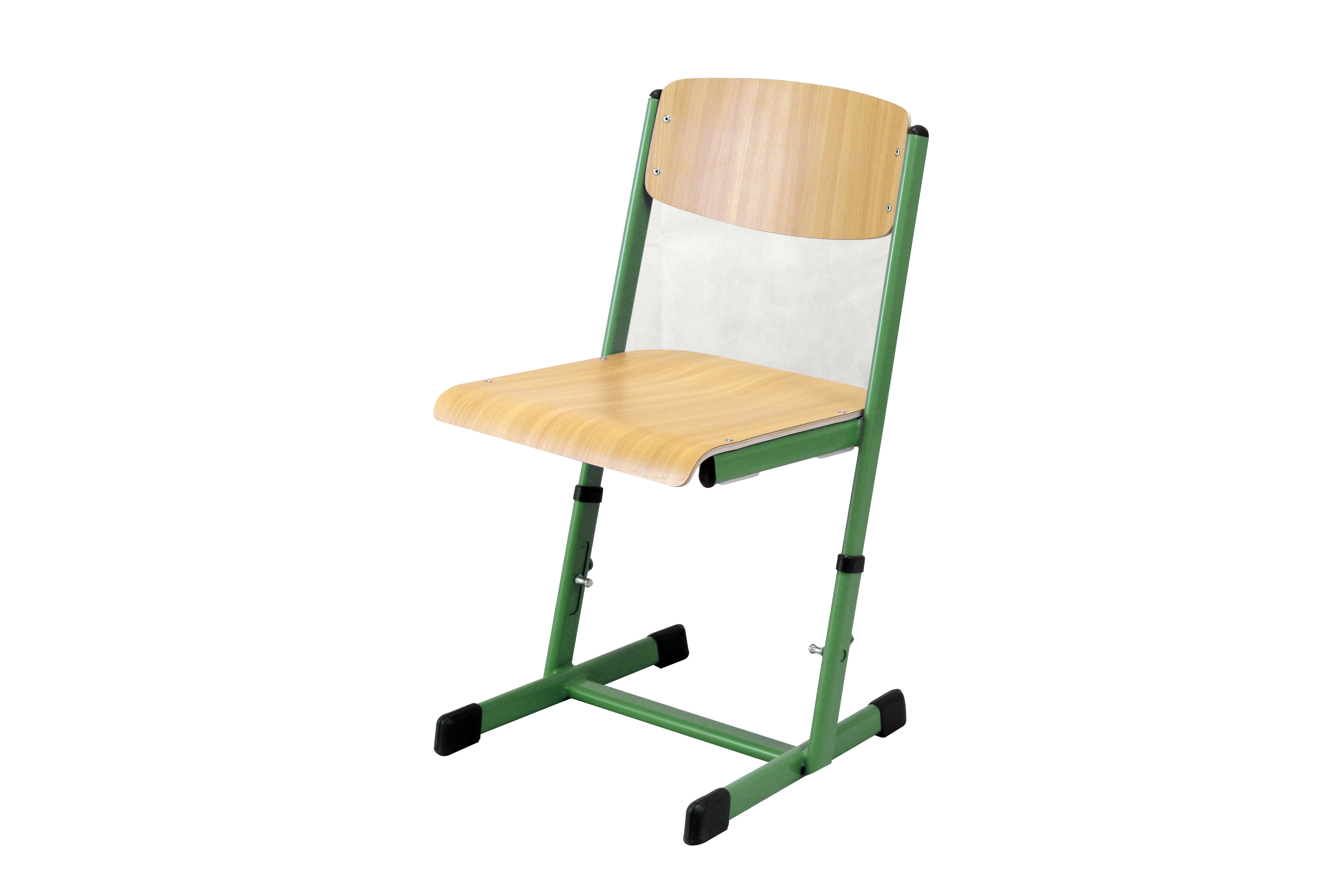 Ecoflex Schülerstuhl höhenverstellbar 34-42 cm, Stahlfarbe grasgrün (RAL 6010). Kunststoffkappen