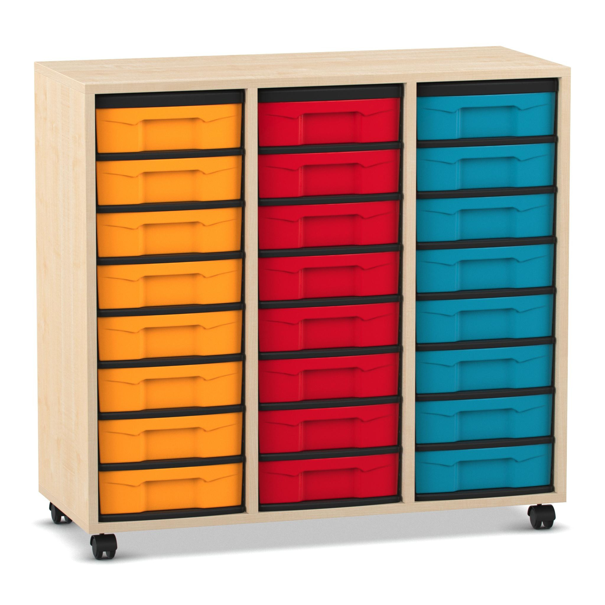 Flexeo Regal, Ahorn honig, HxBxT: 92,3x98,6x40,8 cm, 3 Reihen, 24 kleine Boxen bunt, Rollen