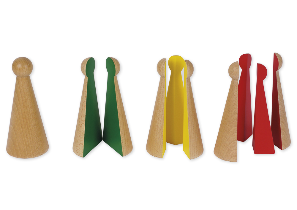Mit den hölzernen Bruchrechenkegeln werden Kindern die ersten Erfahrungen mit Brüchen vermittelt.