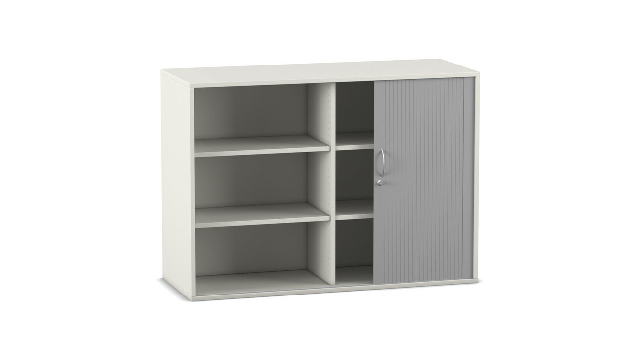 Flexeo Rollladen-Aufsatzschrank weiß, BxHxT 126,4 x 90,9 x 48 cm, 1 Mittelwand, 2x3 Fächer