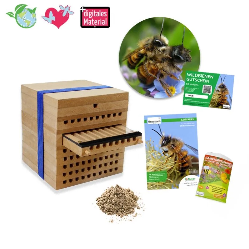 Zuchtset Wildbienen Gehörnte Mauerbiene, Gutschein-Set, 5 Teile