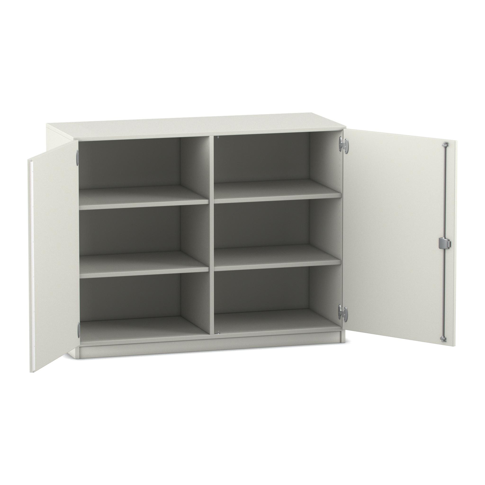 Flexeo Unterschrank weiß, Sockel, 6 Fächer, 99,1 x 126,4 x 40 cm, Bogengriff mit Schloss