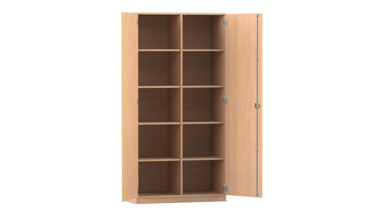 Flexeo® Schrank, Buche hell, 10 Fächer, Mittelwand, 2 Türen, Bogengriff mit Schloss, HxBxT: 190 x 94,4 x 40 cm
