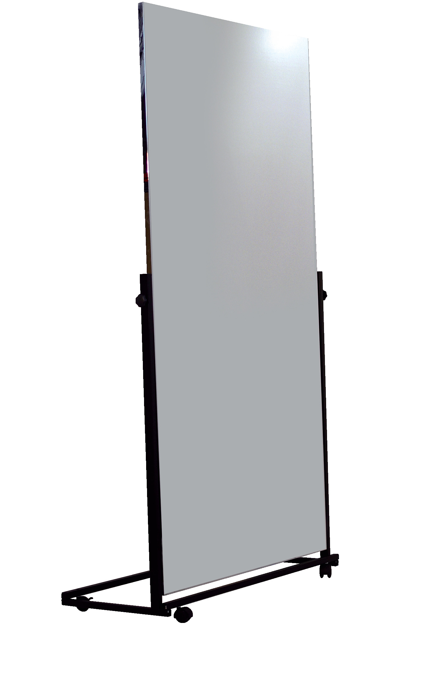 Die fahrbaren Seco Sign Folienspiegel bestehen aus hochwertigem, pulverbeschichtetem Eisen-Vierkantrohr. Die Spiegel sind speziell für den Einsatz in den Bereichen Physiotherapie, Ballett, Tanz und Schulsport entwickelt. An der Unterseite verfügt die Korrektur-Spiegel über feststellbare Rollen. Den Folienspiegel befestigen Sie ganz einfach mit Schrauben am Rollständer. Die verspiegelte Polyesterfolie ist über einen Aluminium-Rahmen gespannt. Zusätzlich besteht die Rückseite aus einer federleichten Polyurethanschaum-Platte. Die Korrektur-Folienspiegel sind thermostabil. Das heißt: Auch bei direktem Sonnen- und Scheinwerferlicht hält der Spiegelrollständer allen Beanspruchungen stand.