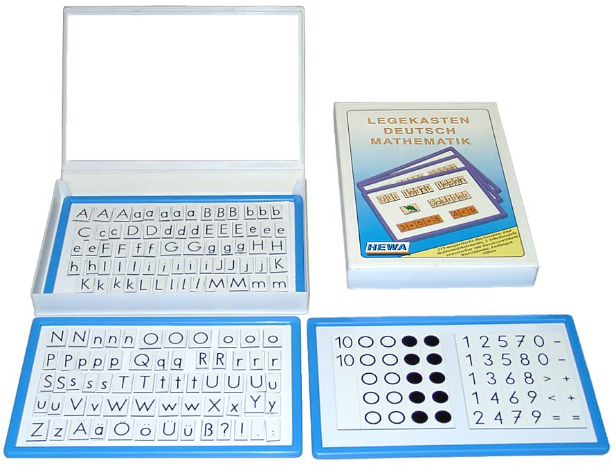 Legekasten Deutsch & Mathematik in blau mit 3 Tafeln, 215 Elemente, 1.-2. Klasse