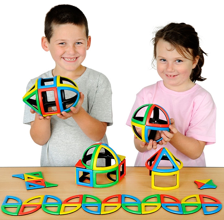 Ein großer Klassensatz-Set für das Bauen runder und gebogener geometrischer Formen, damit alle Kinder zeitgleich mit den Polydron-Formen arbeiten können. Mit der Magnethaftung sind die geometrischen Körper leicht schnell zu konstruieren und dann wieder aufzuklappen.