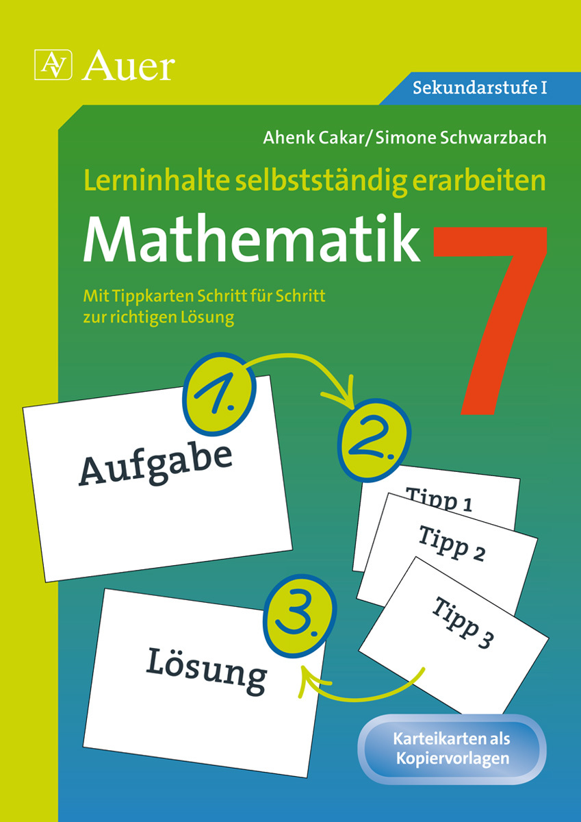 Was aber, wenn ein Schüler nicht weiß, wie er an ein neues Problem herangehen soll? Dann helfen ihm die Karteikarten dieses Bandes. Für jedes wichtige Thema der Jahrgangsstufe findet sich eine Aufgabenkarte, zu der mehrere Tippkarten gehören. Die Schüler wählen individuell aus, wie viele Tippkarten sie benötigen, um zur Lösung zu gelangen – jeder arbeitet dabei in seinem eigenen Tempo. Auf diese Weise bieten die Tippkarten entsprechende Differenzierungsmöglichkeiten für alle Schüler der Lerngruppe. Zu jeder Aufgabenkarte wird außerdem eine Lösungskarte zur Verfügung gestellt, die zur Selbstkontrolle genutzt werden kann.