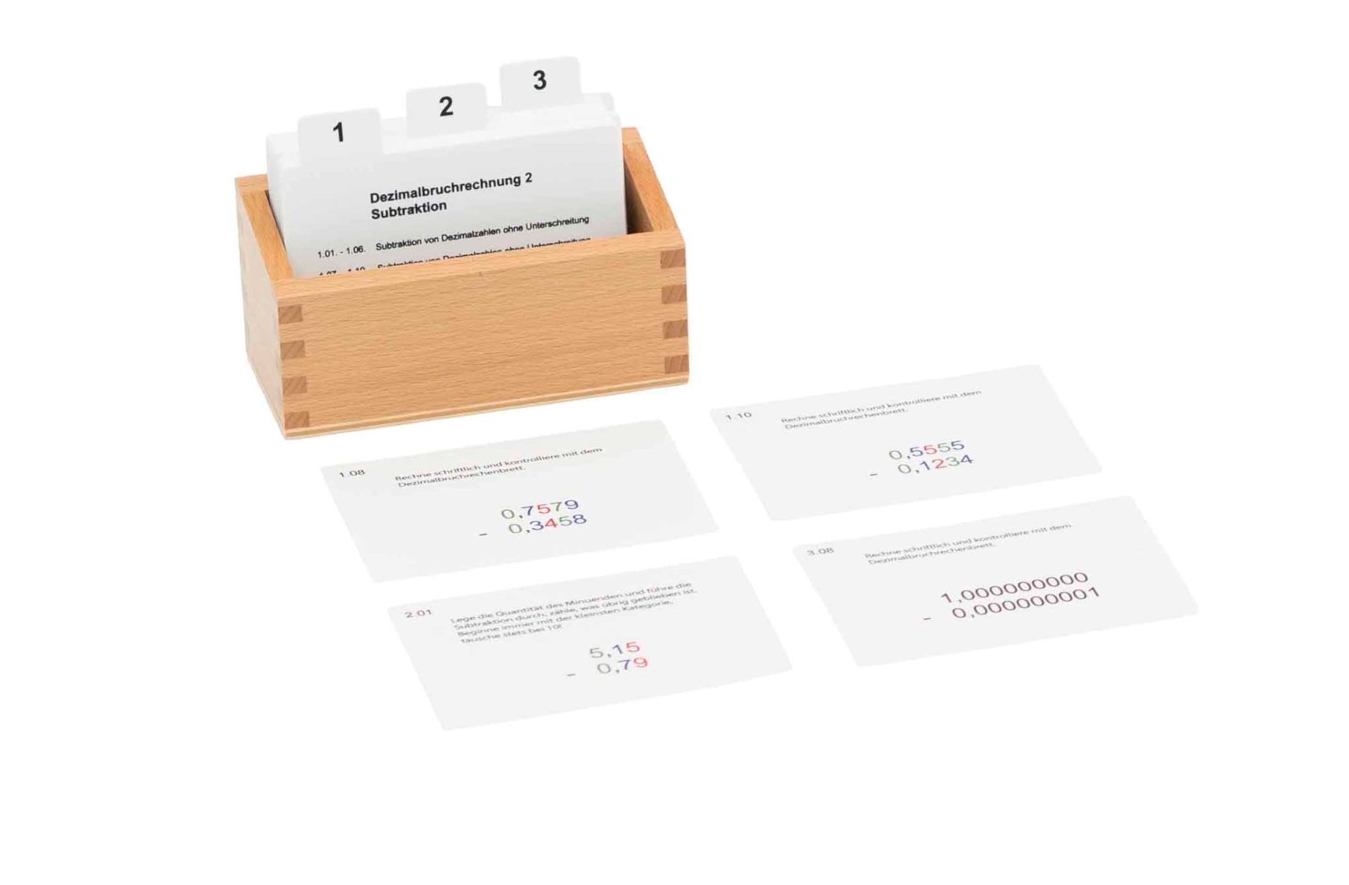 Kasten mit Aufgabenkarten für das Dezimalbruchrechnen 2, ab 9 Jahre