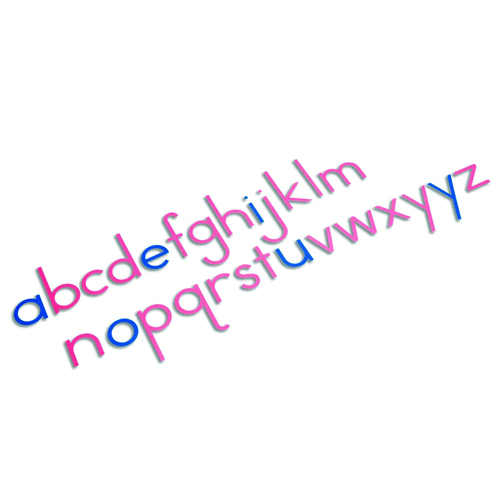 Wenn das Kind die Sandpapierbuchstaben ertastet und kennengelernt hat, kann es mit den losen Buchstaben des Beweglichen Alphabets Wörter aufbauen. Das Material besteht aus den Buchstaben des Alphabets, Vokale blau und Konsonanten rosa, und ist aus dünnem Kunststoff hergestellt.