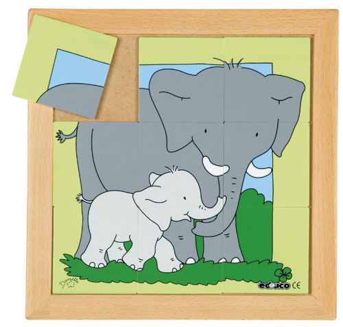 1 Puzzlerahmen aus Holz (Buche, lackiert 24 x 24 cm) 9 Puzzleteile, Kunststoff