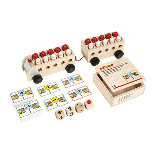 Kleinere Ausgabe des Rechenbusses: ideal für kleine Gruppen und für unterstützende Anleitung. Mit dem Rechenbus können Situationen zur Einführung in das Zählen und Rechnen bis 20 dargestellt werden. Kinder können diese Situationen individuell oder zu zweit mit dem kleinen Rechenbus nachspielen.