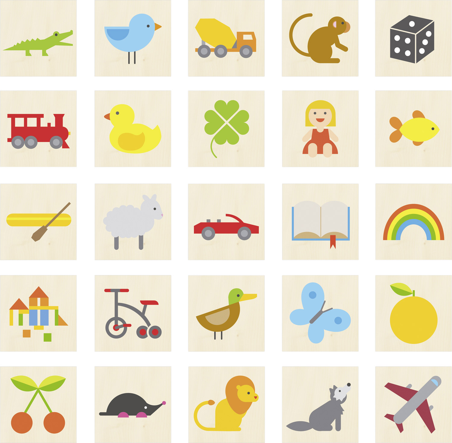 Insgesamt 100 verschiedene Motive, 4 Serien in zwei Ausführungen: Holz oder Selbstklebefolie, zur Kennzeichnung von Garderobenplätzen, Materialkästen oder Portfolios.