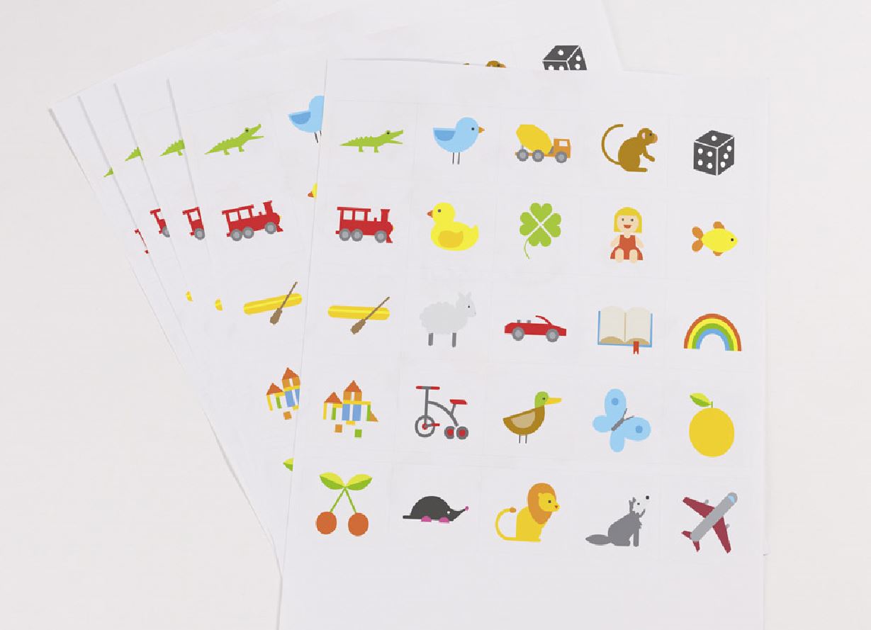 5 Bögen mit je 25 Motiven auf wasserabweisender Selbstklebefolie.