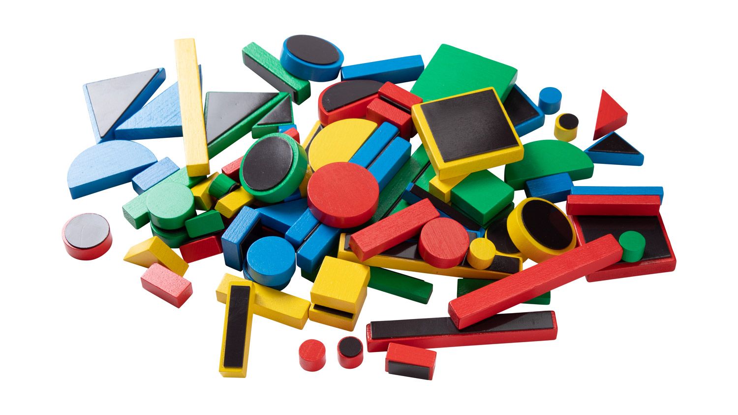 Bunte Magnet-Holzklötzchen für lustige Legespiele. Verschiedene geometrische Formen lassen sich dabei leicht an einer Magnetwand zu unterschiedlichen Figuren zusammenschieben und immer wieder verändern und neu zusammensetzen. Erste Formen werden erlernt. In bunten Farben für Abwechslung und Förderung der Kreativität.