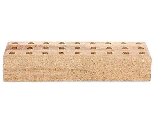 So sind Scheren und Pinsel ordentlich aufbewahrt und griffbereit. Geliefert wird der praktische Ständer aus Massivholz mit 27 Bohrungen. Hier passen 27 Scheren und je nach Pinselgröße bis zu 50 Pinsel hinein.