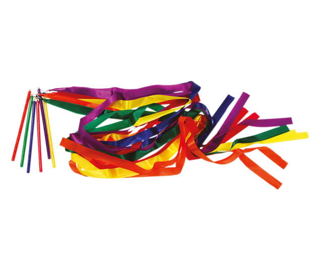 An jedem Handstab sind jeweils 2 bunte Bänder an einem Drehwirbel befestigt - eine interessante Alternative zu den normalen Rhythmikbändern.
