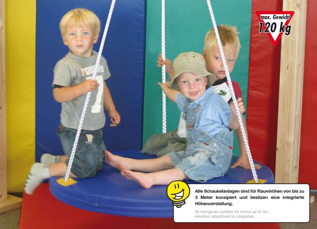 Diese Rundschaukel gehört zu den beliebten Kinder-Schaukelsystemen - Therapiesystemen- der Firma Bänfer und ist für Kindergärten und große Spielräume jeglicher Art bestens geeignet.