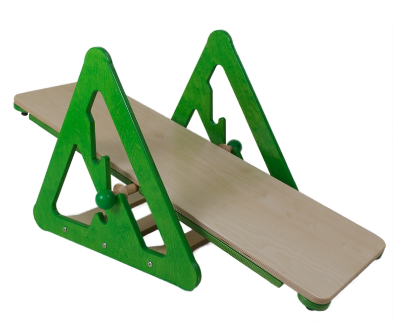 Das Gerät bietet drei unterschiedliche Spielmöglichkeiten: Klettern, Rutschen und Wippen. Entsprechend den Bedürfnissen des Kindes und dem individuellen Schwierigkeitsgrad wird dafür der dreieckige Grundkörper angepasst. Auf einer Seite befinden sich Sprossen zum Hochklettern. Der Holzstab ermöglicht die Höhenverstellung. Das über ein Meter lange Brett kann zum Rutschen oder Wippen oder Balancieren verwendet werden. Das robuste Spielmöbel eignet sich für Kinderzimmer und ist eine ideale Ergänzung für vorhandene Spielecken in Kindergärten und Kindertageseinrichtungen.