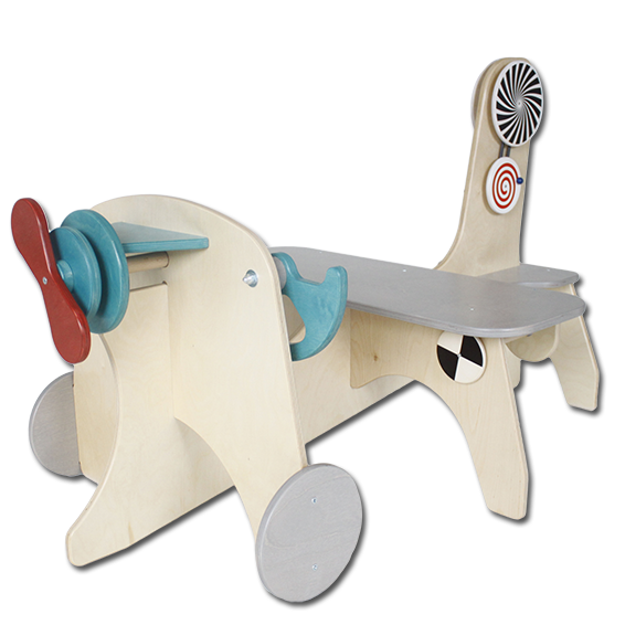 Am Flugzeug gibt es viel zu entdecken. Im Cockpit sind zwei Steuerräder für Pilot und Copilot angebracht, außerdem kann der Propeller durch eine Drehscheibe in Schwung gebracht werden. Am hinteren Teil befinden sich zwei Scheiben, die eine bewegt die andere mit einer Kurbel.