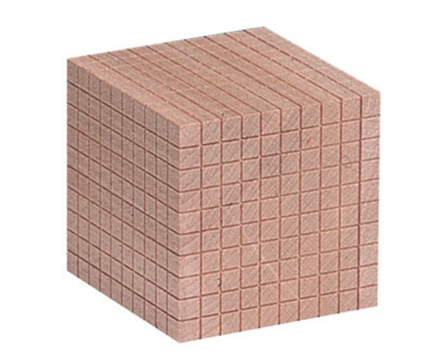 Tausenderwürfel zum Mathematischen Würfel aus massivem Naturholz, gefräste Kanten, nicht zerlegbar.