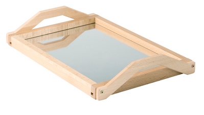 Dieses Tablett ist stapelbar mit seitlichen Holzgriffen. Durch den Spiegelboden bietet es noch mehr Möglichkeiten zum kreativen Experimentieren mit verschiedensten Materialien. DIN A4 Papier ist passend zum Einlegen. Tablett ist nicht kratzfest.
